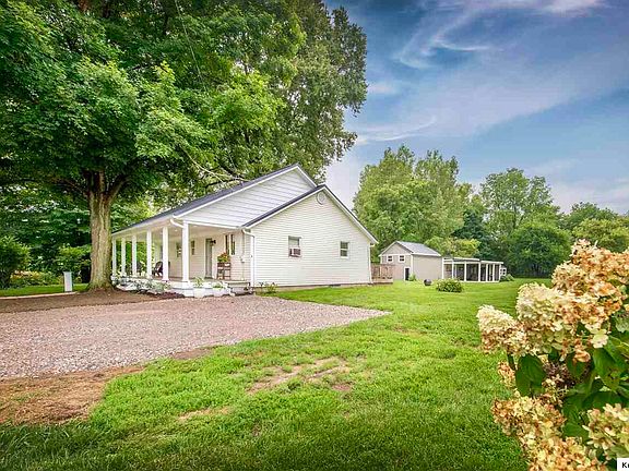 Super Super cute ranch home situated on a 2.007 park-like acre setting! This home features 3 bedrooms and 1 full bath. White cabinet filled kitchen with major appliances conveying. Cozy living room highlighted by an attractive electric fireplace with beautiful shiplap surround. White wood work throughout most of the home, beautiful laminate flooring, relaxing covered front porch. Awesome flat barn - great for tinkering around and for extra storage with attached 15 x 18 finished room(drywall and flooring) - currently being used as a dojo/exercise room. Charming brick-paver covered patio - Perfect for entertaining! Green house Area off of brick paver patio with new windows! Easy to care for vinyl sided exterior, high efficiency forced air furnace. This home will move FAST!