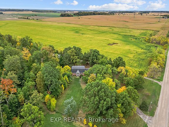 Welcome to a rare and cherished country property that has been home to the same family for over 50 years. Set on 45.5 scenic acres, this property offers a beautiful mix of open space and nature, including approximately 8 acres of lot, 12 acres of mature bush with walking trails, and 25 acres of workable land. Outbuildings include a 22x27 ft shop, a 31x48 ft combined hay and implement barn, and an 11x15 ft Bunkie, perfect for guests, hobbies, or added storage. A serene pond on the property provides year-round enjoyment, from peaceful summer evenings by the water to skating in the winter and fireside gatherings with family and friends. This is more than just a property, it's a lifestyle. The land invites maple syrup collecting in the spring, quiet walks through the bush surrounded by deer and wild turkeys, and unforgettable family traditions like corn roasts, winter hayrides, and holiday gatherings. The home itself is filled with warmth and character, offering cozy spaces like the family room that has hosted countless get-togethers, and a back porch perfect for watching sunsets over the fields. Thoughtful updates over the years include a new furnace and septic system in 2020, a drilled well in 2005, and a new roof in 2012. Interior improvements completed in 2005 include new trim throughout, select updated windows, a refreshed kitchen, family room, staircase, laundry room, and garage. A generator hookup panel has also been installed for added peace of mind. This is a property with heart, history, and endless potential, a place where memories are made, and a true sense of peace and belonging can be found.