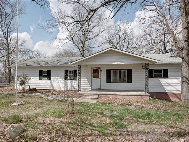 Affordable home near Lake Taneycomo, Bull Shoals Lake and Forsyth. This four bedroom, two bathroom home features an open floor plan, formal dining room, wood burning fireplace, covered front porch, large back deck, two storage sheds and a carport. This home sits on nearly an acre and has plenty of room to park your RV and fishing boat.