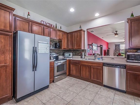 Welcome home to this 3 Bedroom, 2 Bathroom, 1,461 Square Foot home in the Harrison Ranch neighborhood. This home features an eat-in kitchen with darker wood cabinets, stainless steel appliances, ceramic tile floors and a breakfast bar overlooking the dining/living room. Enjoy the pond view through the large glass sliding doors in the living room. The master suite is located at the rear of the home, separate from the 2 additional rooms. Amenities include a media and game room, fitness, tennis, recreation areas, jr Olympic-size pool, BBQ pavilion and playground. Harrison Ranch is conveniently located close to I-75, making this area perfect for St. Pete, Tampa or Sarasota commuters.