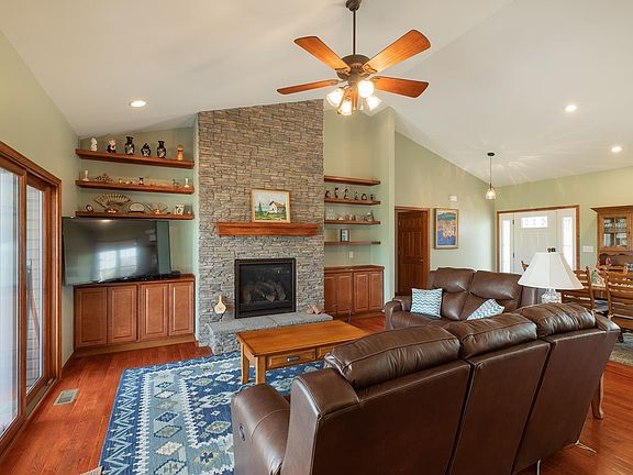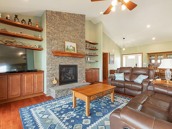 Your dream home is here! This beautiful home boasts 5 beds 3 baths. Main floor has large eat in kitchen with beautiful Cambria counters, living room with gas fireplace with built ins, dining room, Mst. Bed with huge closet and bathroom, huge laundry room with tons of cabinets and counter space, upper(attic area) 5th bedrm, Lower level has a large family room with storage. 2 car attached garage. Large patio 1 Acre lot with a 40x42 detached garage will hold 3 cars plus a plane with a 12x40 hangar door. This home has tons of extras.CAT 6 internet cable wired throughout the home w/plug ins, 2 ceiling mounted wifi access points, generator plug in outside the home, Solar panels, Tesla power walls, Auxiliary Lumin electric panel, buried propane tank, mini split heat pump for attic room, wired Ring doorbell plus 4 solar cameras. Stand up freezer in lower level stays. Metal shelving in basement and detached garage stay.Direct taxiway access from hangar to runway, owning an airplane not required