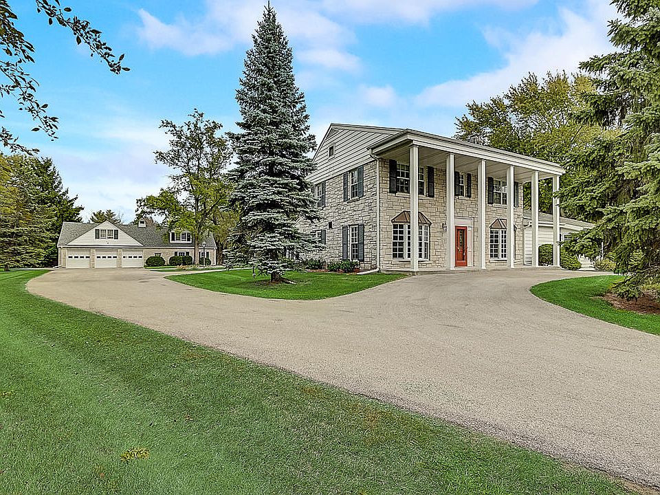 Very special property in sought after location just over the River Hills boarder in Ozaukee County. This fabulous opportunity sits on over 4 acres of groomed expansive yard with 3 spacious outbuildings perfect for the car enthusiast. Main House has been expanded to include beamed soaring ceiling family room and attached sunroom with three walls of windows. Great master bedroom addition on the main floor with expansive walk-in closet and attached master bath. Original house is traditional in nature and offers great architectural elements. The real star of the show are the outbuildings and yard. Original barn is perfect for workout area or separate office space. Pole Building housed antique cars and has stairs to second floor. Unique property has been well maintained. Shows beautifully.