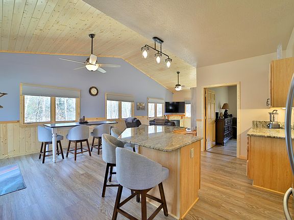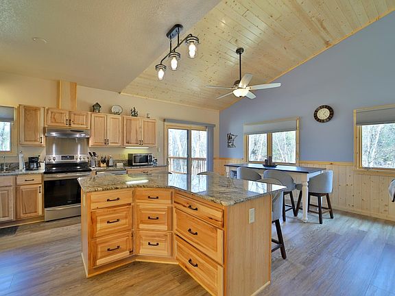Don't miss this well maintained one level home. Home features vaulted wood ceilings, an open floor plan, electric fireplace, granite counter tops, custom Hickory cabinets, a built in murphy bed, an attached three car heated/insulated garage, steel siding, large deck over looking your private pond, storage shed and so much more. Additional land is available. Don't miss this one.
