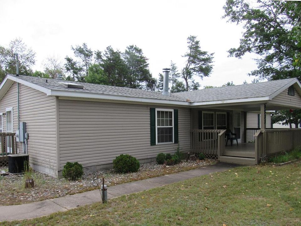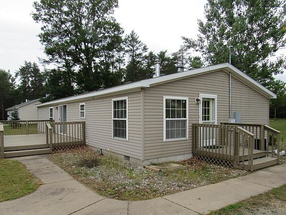 Beautiful well maintained 3 bedroom, 2 full baths baths homeon 2 Acres.Home offers 1439 Sq.Ft with open floor plan. Vaulted ceilings. Beautiful stone gas fireplace. Large deck off dining room with patio door. Appliances include Gas stove, refrigerator, dishwasher, washer and dryer. Satellite T. V. Pole Barn, LP Gas Forced Air Heat. Central air. Covered porch. Vinyl siding. New Roof. Large yard. Close I-75, State Land, and snowmobile trails.