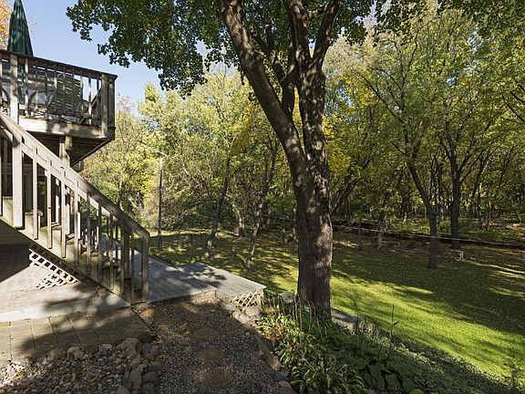 Over 1/2 wooded lot on Nine Mile Creek! This 4BR 3 bath rambler features hardwood floors, a main floor family room, sun room + updated kitchen with granite countertops, stainless appliances + refaced bamboo cabinets. Very open main floor plan. Two main floor baths. The deck, sun room and family room all overlook the yard and creek. Walkout level amusement room, den, 4th BR and full bath. The yard and setting are spectacular- all on a cul de sac. Near Bloomington Ice Garden + nearby parks.