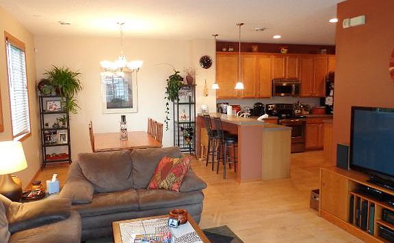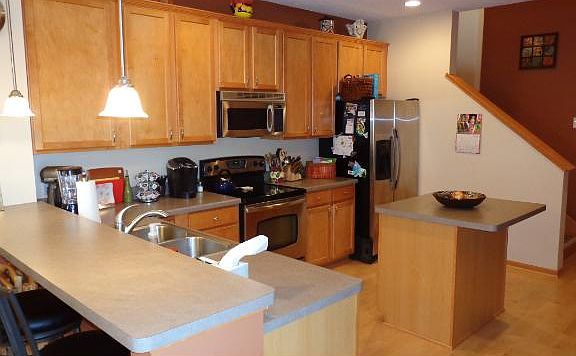 Exceptional end unit in Delgany next to pond with beautiful views from you front porch. 2BR, large loft(office) area upper level with newer carpet, large bathroom up with tile floor; Newer wood floors, stainless steel appliances, center island, shows well, Directions I-94 to Maple Grove Pkwy, W to 95th Ave (CR-30), R to Troy Lane, R to 97th Place, L to Vagabond Lane, R to home on left