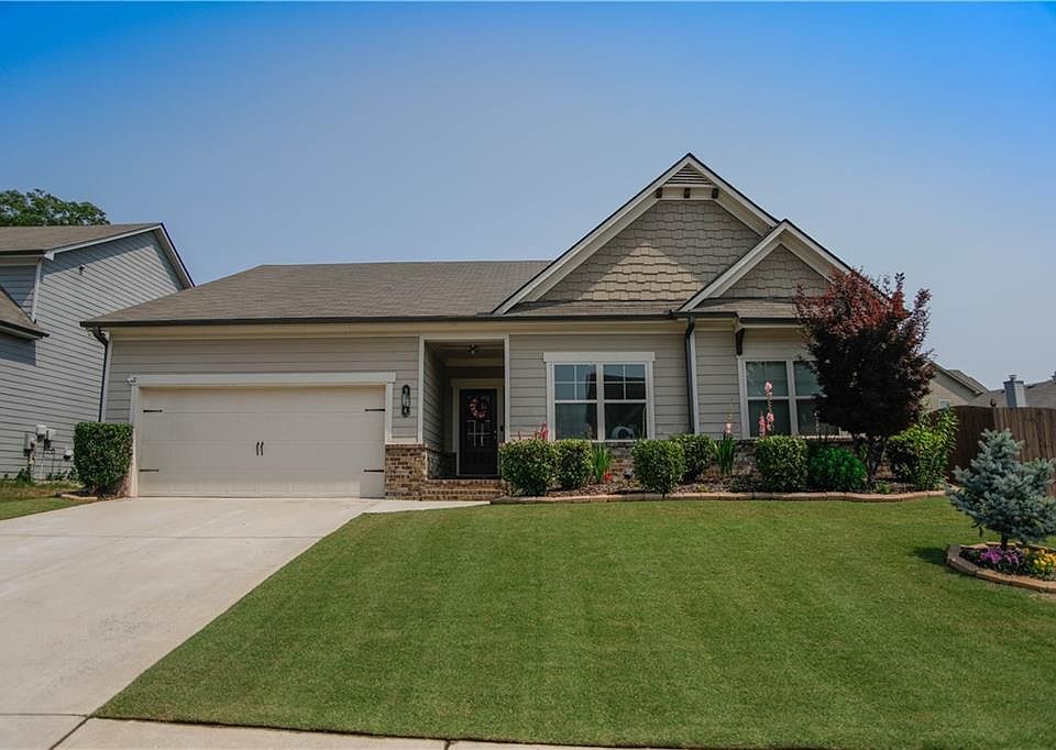 Welcome to your future home! This beautifully maintained home offers the perfect blend of comfort, style, and smart living. Step into a spacious open-concept layout designed for both everyday living and effortless entertaining. Inside, you'll find modern features throughout—including huge walk-in closets, granite countertops throughout, and a smart thermostat to keep your home energy-efficient year-round. The living areas flow seamlessly, making it easy to host family and friends. Step outside to your private oasis. The landscaped yard includes an irrigation system for easy maintenance, a covered patio perfect for relaxing or entertaining, and a cozy outdoor fireplace with a mount for a TV—ideal for movie nights or game days. The fenced-in backyard is enhanced with solar lighting along the fence, creating a warm ambiance in the evenings. For those who love organization and functionality, the garage is a standout feature, with sleek epoxy floors and custom storage solutions to keep everything in its place. This home truly has it all—inside and out. Don’t miss the opportunity to make it yours! It is located in a desirable neighborhood, on the Braselton Life Path. Golf Cart accessibility to several dining and entertainment options.
