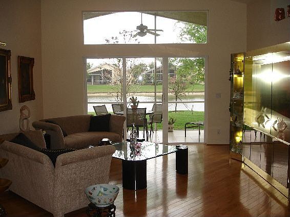 ACTIVE COMM. 55+! LIGHT BRIGHT AND AIRY GREAT ROOM DESIGN FLOOR PLAN...THIS HOME HAS A SPACIOUS BREAKFAST AREA OFF THE KITCHEN...GREAT VIEW OF THE LAKE TO BE ENJOYEED BY SIPPING YOUR COFFEE...REAL WOOD FLOORS ON THE DIAGONAL THRU THE LIVING AREAS CREAT AN ELEGANT FLOW THE KITCHEN HAS A CONTEMPORARY AMBIANCE OF WHITE CABINETS WITH BLACK GRANITE....THE PATIO LANAI IS FULLY COVERED AND SCREENED, THE FLOOR IS TILED FOR EASY CARE...RELAX AND ENJOY FLORIDA LIVING...THE DEN/OFFICE HAS PLANTATION SHUTTERS...THE FRONT ENTRY IS A WELCOME HOME WITH UPGRADED LANDSCAPING AND ROCK DISPLAYS...BELLAGGIO LIVING WITH LAKE VIEWS...FABULOUS CLUBHOUSE AND COMMUNITY AMENITIES ABOUND...