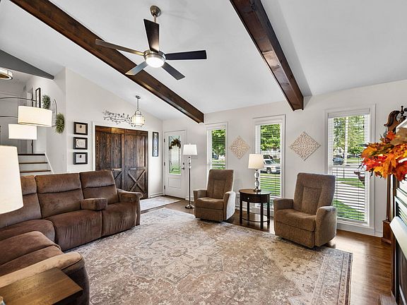 Welcome to 9835 Arthur Court in Crown Point, IN -- a completely updated 3-bedroom, 2-bath home on a quiet cul-de-sac lot with a long driveway, a two-car garage, and a storage shed, blending modern updates with comfortable living. Highlights include a new roof (last year), new gutters, and energy-efficient windows installed four years ago; a kitchen remodel completed three years ago; and upstairs bathrooms updated six years ago. The family room and kitchen boast vaulted ceilings and a skylight, letting in abundant natural light and enhancing the open - floorplan. The mechanicals are solid: furnace is six years old, water heater is brand new (two months old), and the AC is in good working order. Cozy ambiance is provided by two ventless gas fireplaces. Rounding out the package are a Nest thermostat and Ring doorbell that stay with the home. The backyard is large and private with landscaping, featuring a covered deck ideal for entertaining and providing a serene outdoor space to enjoy year-round. You're just minutes away from the square, dining and shopping, placing Crown Point's best conveniences right at your doorstep. This turnkey property is ready for you to move in and start making memories.