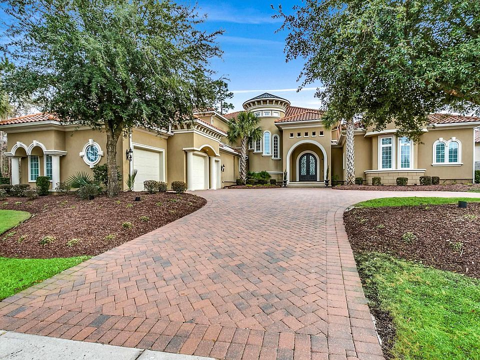 Don't miss this amazing opportunity to own one of the largest Mediterranean masterpieces on the waterway in the highly exclusive gated community of Members Club at Grande Dunes. This 4 bed 4 full and 2 half bath home was completed in 2010. The 6500 sq ft open floor plan makes it a wonderful home for entertaining. The gourmet kitchen features custom cabinets, granite counters, work island with sink and stove top are well appointed with top of the line appliances. The great room features soaring trey ceilings and oversized picture windows that allow for abundance of natural light and large entertaining bar with sink and two wine refrigerators. The enormous master suite features trey ceilings, large sitting area with a wet bar, two enormous walk-in closets with custom shelving. The en-suite bath features dual vanity granite sinks with oversize tub with large walk in tile shower. The main floor also features a guest bedroom,office and spacious laundry room. The second floor features two bedrooms with en-suite baths, theater room, wet bar, spacious loft area and expansive balcony that overlooks the pool and ICW. Tile flows throughout the common areas and baths while carpet in bedrooms and second floor. The backyard has a wonderful pool and spa, built in gas grill and plenty of room for a great day of entertaining. Other features are oversized three car garage. This property is located in South Carolina’s premier coastal community in Myrtle Beach; Grande Dunes. Stretching from the Ocean to the Carolina Bays Preserve, this 2200 acre development is amenity-rich and filled with lifestyle opportunities unrivaled in the market. Owners at Grande Dunes enjoy a 25,000 square foot Ocean Club that boasts exquisite dining,oceanfront pools with food & beverage service, along with meeting rooms and fun activities. Additionally, the community has two 18-hole golf courses, including the area’s only truly private course designed by Nick Price, along with several on-site restaurants, deep water marina, Har-tru tennis facility and miles or biking/walking trails!