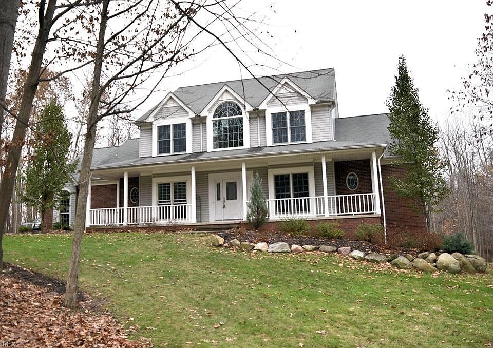 Spacious Colonial situated on 3 wooded acres in desirable Campton Ridge! This home boasts over 4200 total finished sqft with 4 Bedrooms, 3 full baths & 2 half baths. Foyer entrance welcomes you with hardwood floors through to Great Room with gas fireplace. Kitchen with maple cabinets, granite counters, stainless steel appliances, hardwood floors & vaulted Breakfast Room with deck access. French doors to formal Living Room & Formal Dining Room with trey ceiling. 1st Floor Master Bedroom Suite with vaulted ceiling, walk-in closet & Glamour Bath with his/her vanities and jetted tub. 1st floor Laundry & Mud Room. Second floor includes Bedroom 2 & 3 with Jack and Jill bath to share and 4th Bedroom with private full bath. Full finished basement includes huge Family/Rec Room, gas fireplace, office/workout room, bar area, half bath and walk-out to brick patio with firepit. Furnace and AC approx. 4 years old. Enjoy wooded views out every window or relax on the deck or covered front porch. 3-car attached garage & concrete drive. Storage shed. 1-yr home warranty. Close to freeways, shopping & hospitals. Chardon Schools.