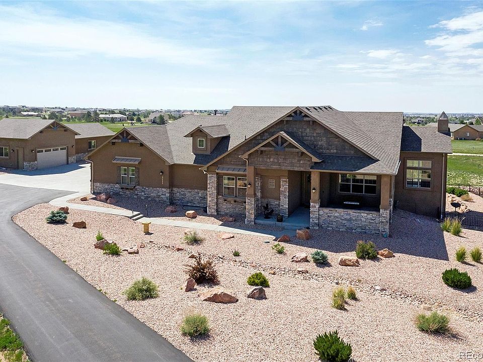 Views, Views, Views...Custom Walk-Out Ranch Home On 3 Acres w/Spectacular Mountain & City Views...Attached 4-Car Garage & A Detached Heated & Air Conditioned Shop w/A 20x30 2 Car Garage & A 24x24 Workshop...Positioned To Maximize The Views, The Craftsmanship & Details Both Inside & Out Won't Go Unnoticed Starting With The Stucco & Stone Exterior Complimented By Designer Shake Siding & Wood Beam Accents, And An Inviting Covered Front Porch Staring At Pikes Peak...Inside, A Modern Tile Floor Entry Lead You Into An Amazing Great Room With A Floor To Ceiling Fireplace, Vaulted Ceilings, Incredible Views, And A Walk Out To A 40 Foot Covered Deck...Open And Bright, The Gourmet Kitchen Features All The Bells And Whistles Including A Walk In Pantry, 5 Burner Gas Stove, Hand Selected Granite Counters, Knotty Alder Cabinets, And A Generous Island & Breakfast Bar Overlook The Dining Room And Great Room...The 10 Foot Beamed Ceilings In The Dining Room & Kitchen Add To The Ambiance Of This Elegant Home...A Generous Master Suite Features A Walk-In Shower With No Threshold, Rich Cabinetry, Granite Counters, Tile Flooring, And A Private Sitting/Sun Room w/Views & Walk Out To The Covered Back Deck...You'll Love The Huge Master Closet And Attached Laundry...A Main Level Guest Bedroom & En-Suite Is Perfect For Guests Or Family Are Just Down The Hall From The Main Level Office...Handicap Accessible With No Threshold From The Garage Into The House, & An Elevator To The Walk-Out Basement...Downstairs, The Family/Rec Room Has A Grand Wet Bar And Walks Out To The Covered Back Patio & Hot Tub...2 Additional Bedrooms With A Jack-n-Jill Bath, A Theater Room, And Sauna/Exercise Room Complete The Basement...Tons Of Storage, This One Of A Kind Home Will Meet All Your Needs...Incredible Views, Impeccably Maintained, With All The Features You Expect In A Custom Home...Located On The Edge Of The City With Easy Access To All The Amenities Colorado Springs Has To Offer...Don't Miss This Opportunity!