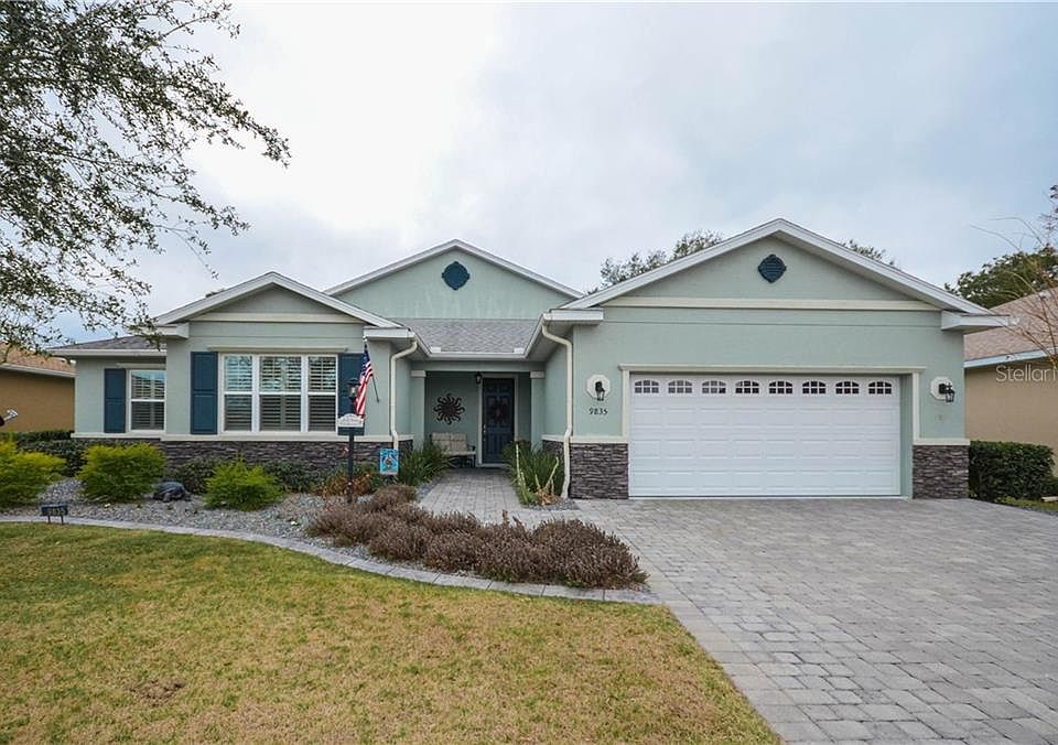 PREMIUM GOLF LOT with COUNTLESS UPGRADES! This beautiful spacious Westminster model home is located in the Windsor West neighborhood of the highly sought after gated 55+ golf community of On Top of the World. To fully appreciate the residence, make sure you view the 3D Virtual tour. Home features 3 bedrooms (2 Master Suites), 3 baths, oversize extended 2-car garage to include Golf Cart parking/workshop area, Flex Room, enclosed screened courtyard, huge screened Lanai under roof and birdcage with deep golf course frontage, split bedroom floorplan, 9'4" ceilings throughout, crown moulding throughout, 8' doors throughout, Quartz counters, Maple cabinetry throughout, huge custom pantry with pull-outs and electric outlets, Owner's entry, custom closet systems by Pro Closet Design in all closets, walk-in Roman shower in Master Bath, custom window treatments and top-down/bottom-up room darkening shades, ceiling fans throughout, large Laundry Room with additional storage cabinets and sink, neutral tile in most rooms, neutral carpet in Master bedroom and front bedroom, spacious open kitchen with eat-at island, under cabinet task lighting, custom backsplash, top-of-the-line stainless appliances (refrigerator, range and dishwasher have transferrable warranties), 3 Solar tubes for additional natural light in Laundry Room (Solar night light), Master closet and Master Shower Room, core filled insulated walls, widened paver driveway and front walk, professional landscaping with custom poured edging and marble chip beds, and MUCH MORE! A more complete list of features and upgrades is available. Lawn care, gym, exercise classes, 24-hour guarded gate, exterior painting, and more are included in your monthly HOA fee. This home offers a wonderful floor plan with lots of room and privacy. 2 Lanais - smaller Lanai accessed from Kitchen and Flex Room and huge Lanai with privacy screening at back of home. 3 natural gas bibbs for grill hook-up in both Lanais and outside large Lanai. Garage features split unit HVAC for climate control, overhead hanging storage, epoxy floor finish with heavy duty industrial rubber mat covering and pull-down screen door with built-in man door.