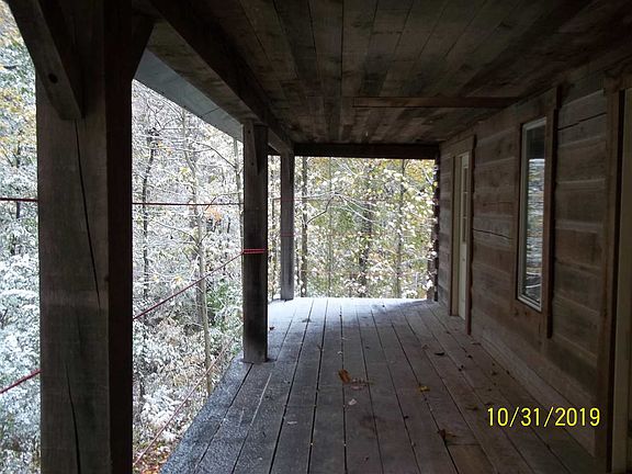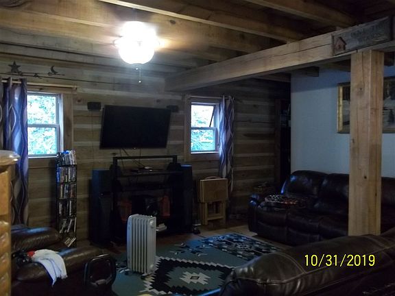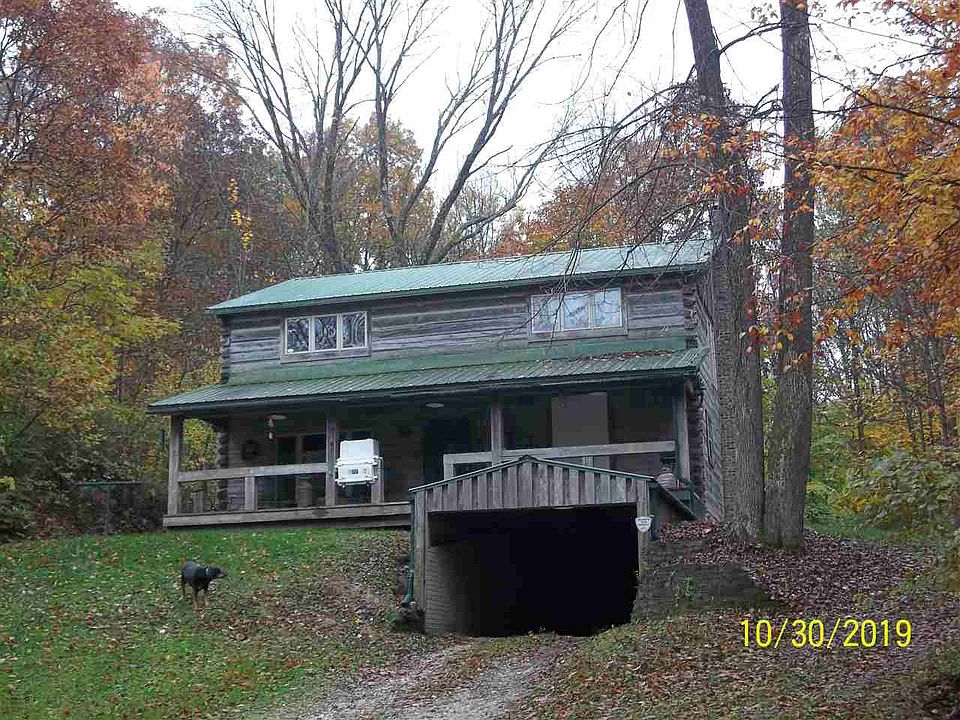 A true 2 story log home situated on 13.91 wooded acres that backs up to Otter Creek. Peaceful, private & serene setting with lots of wildlife. Driveway back to the property is an easement. Optional wood burning heat. Full basement partially finished with hot tub room, workshop, 1 car attached garage, and utility room. First floor is open concept with hardwood floors, a humongous eat-in kitchen with appliances included, laundry area, and wood burning fireplace. One full bath on the main level. Second floor has the master bedroom with spacious closets, a full bath, and 2 additional bedrooms. Three 8'4'' x 36' porches span the length of the home with a metal roof. Fantastic 36' x 40' pole barn for additional storage, crafts or hobbies. Abundance of parking for an RV or boat. Don't hesitate on this unique opportunity.