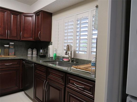 A MUST SEE!! Gorgeous 2 bedroom/2 bathroom Condo in the 55+ community of EAGLES POINT. You will fall in love with this first floor, end unit as soon as you walk in. The kitchen has BEAUTIFUL cabinets with granite countertops, New stainless steel appliances (2020). The living room/dining room features a bar, great for entertaining and a stone fireplace. Plantation shutters on windows. The Luxury Vinyl Plank flooring was replaced in 2020. Both bathrooms have granite countertops with vessel sinks. The AC unit was updated in 2020 and Hot water heater was updated in 2015. There is a storage unit and one covered parking spot per unit. Furnishings are negotiable.