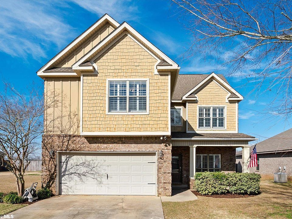 Welcome to your dream home in the desirable Oldfield Subdivision, complete with pool amenities! This stunning 4-bedroom, 2.5-bathroom custom-built Craftsman home backs up to a peaceful field, offering the perfect setting for relaxed mornings with a cup of coffee on your charming front porch. The main level boasts a gorgeous formal dining room with wainscoting, plantation shutters, and elegant hardwood floors, along with an open concept kitchen featuring granite countertops, a subway tile backsplash, a breakfast nook with a built-in banquette, and a pantry for all your storage needs. The great room is adorned with new luxury vinyl plank flooring, while a convenient half bath completes the main level. Upstairs, you'll find all the bedrooms with no carpet and LVP flooring throughout (except for the stairs for added comfort). The large primary bedroom features a breathtaking vaulted ceiling and plantation shutters, as well as a spacious en-suite bath with dual vanity, granite counters, a garden tub, a walk-in shower, a separate water closet, and a HUGE walk-in closet with custom shelving. The backyard is an entertainer's paradise, with a large, fully fenced yard complete with a sprinkler system for easy maintenance. Host your family and friends for a BBQ on the back patio and enjoy a game of cornhole or football. Oldfield offers a lovely community pool for you to enjoy, while being conveniently located near the new 181 Fairhope Publix, new USA Health Care offices, Fairhope Walmart, and shopping and dining in Fairhope and Daphne. Don't miss out on this incredible opportunity - call today to schedule your appointment!