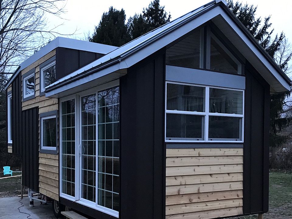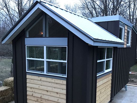 Tiny House with two areas with loft. Loft space is 100sq ft. and 280sq ft. of floor space including full kitchen and bath. Lots of windows. Metal siding with some cedar. Metal roof front and back with flat roof in middle for deck area. 5th wheel hook up. Hot water tank with two wall heaters one in front and one in back. Last winter 2018 1 heater was all that was needed. Lived in for 8 months. All new construction. No Land Tiny House Only