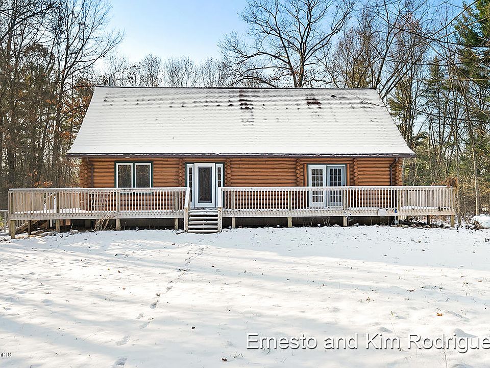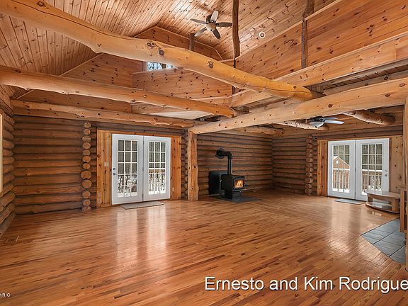 Calling all nature lovers! This stunning log cabin has over 3400 square feet of living space and also sits on over 19 acres of beautiful land. Enjoy the serene view of the outdoors from the wood deck that wraps around the entire house. With 2 huge pole barns measuring 32'x48' and 30'x40' AND a 34'x16' shed, you'll have plenty of storage for all your outdoor toys! This home boasts a spacious kitchen with new appliances, a large island and a walk in pantry. The dining room, living room, master bedroom and full bathroom complete the main floor. Upstairs you will find 2 bedrooms, another full bathroom and a sitting area. In the basement there is a family room, rec room, bedroom, full bathroom and additional storage. Come see this gem today! Buyer to verify all information.