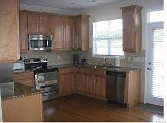 Don't miss this gorgeous townhome loaded with custom options priced below tax value! Well appointed kitchen w/ granite countertops, tile backsplash, recessed lighting, glass cabinet doors and stainless steel appliances. Hardwood floors in foyer and second floor. Master bathroom has jetted tub w/ tile surround, tile floors and dual vanity. Refrigerator conveys. 2" blinds throughout