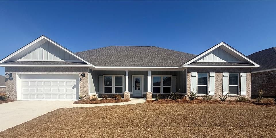 UNDER CONSTRUCTION: Step into 9838 Summit View Circle North in Mobile, Alabama. Entering the community on Hamilton Ridge Drive, turn right onto Summit View Circle and continue straight around the curve. The home will be on your right. The Katherine, a spacious floorplan at Hamilton Ridge in Mobile, Alabama. At over 2,500 square feet, this home boasts 4-bedrooms, 2.5-bathrooms, formal living, dining room and a 2-car garage. The Katherine floorplan is an entertainer’s dream. Entering the home, you are greeted by a dining room that is perfect for those special meals and a formal living room. Continuing into the home is a spacious great room with a kitchen that won’t disappoint, offering an island with granite countertops, farmhouse sink, stainless-steel appliances, pantry, then opens to the breakfast area. There is outdoor access to a covered porch. To one side of the home are three bedrooms that share a full bathroom with a dual sink vanity and a separate water closet with a shower/tub combination. Tucked on the opposite side of the home is the primary bedroom and a hallway to the laundry/utility room that has access to the garage. The primary bedroom is gracious in size and offers an ensuite that has a dual sink vanity, garden tub, tiled shower, separate water closet and a walk-in closet that will accommodate the most ambitious wardrobe. The Katherine includes a Home is Connected smart home technology package which allows you to control your home with your smart device while near or away. This home is also being built to FORTIFIED Gold HomeTM certification so see your Sales Representative for details. Pictures may be of a similar home and not necessarily of the subject property. Pictures are representational only.