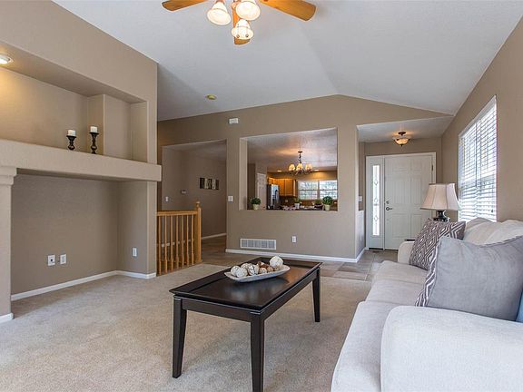 Rare Stonegate ranch style home located on a quiet cul-de-sac with a greenbelt behind the home. Beautifully landscaped yard with sprinkler system. Large great room concept with kitchen and dining open to the living room. Stainless steel appliances with gas range and granite countertops. Main level laundry keeps everything on one level. Large Master bedroom has 5 piece bath and walk in closet. Beautiful tile floors in kitchen, hall and bath. The basement has 3rd bath rough in and is light and bright with lots of room ready for your personal finish. Stonegate has many parks, walking paths, and 2 pools for family activities. Parker rec center and schools are close by. You will love the layout of this home and it is ready for you to move in.