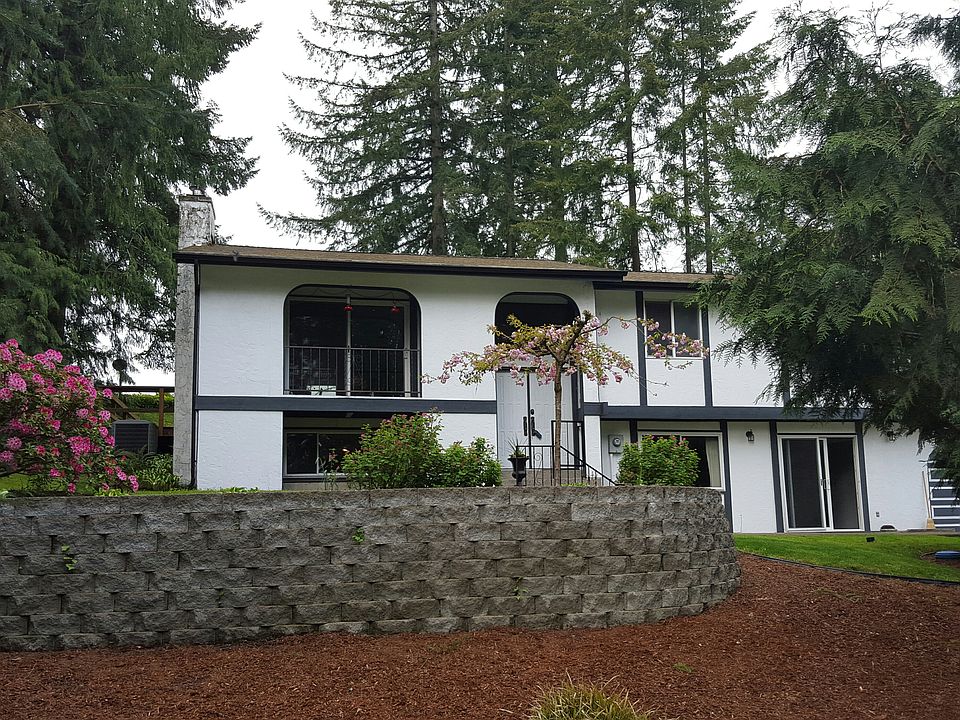 Large 4 bed/3.25 bath home on shy 3 acre parcel, rural, evergreen trees, fruit trees and mature landscaping. All bedrooms are on upper main level, living room upstairs with fireplace, dining room, updated kitchen with stainless steel appliances. Master bedroom w/walk in closet. Spacious office off master overlooks prop - possible nursery. Large living area down with fireplace and certified wood stove. Two car attached garage, four bay pole barn, RV parking, fully fenced pasture.