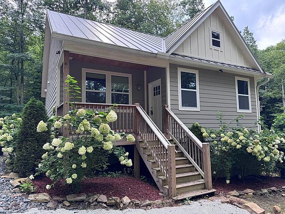 Close to Fishing and Nantahala Gorge! Your retreat in Grand View Falls, a prestigious gated community. This exquisite two-bedroom, two-bathroom chalet is across from a community pond and creek, offering tranquil views and sounds from your wooded lot. Inside, an open-concept design features a wood-clad vaulted ceiling in the main living area and a cozy loft. The modern kitchen boasts granite surfaces and wood floors, creating an inviting atmosphere. Recent upgrades include a new two-car garage pad in place and a garden with a firepit. Enjoy strolls or hike to the community waterfall. With nearby activities and Andrews' amenities, this modern mountain chalet combines comfort and adventure. This slice of paradise! It is a great area for a VRBO or AirBNB! Close to Nantahala Outdoor center, river rafting, trout fishing! Come enjoy the Great Outdoors!