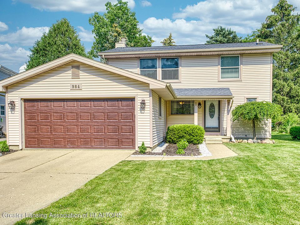 Charming, move-in ready home on a cul-de-sac in a desirable East Lansing subdivision. It features neighborhood park, running trails and is walking distance to schools plus is minutes from MSU, The Frandor Shopping Center and US-127. The location cannot be beat This home is move-in ready with brand new kitchen, roof, new carpet, and paint throughout. Other features include a great floor plan with natural light, wood burning fireplace, master suite with walk-in closet and tile bath. The lower level has a bonus den/play space and loads of storage. Off the living room is a beautiful 2-tiered deck space with pergola that overlooks the walking/biking trails and natural areas.