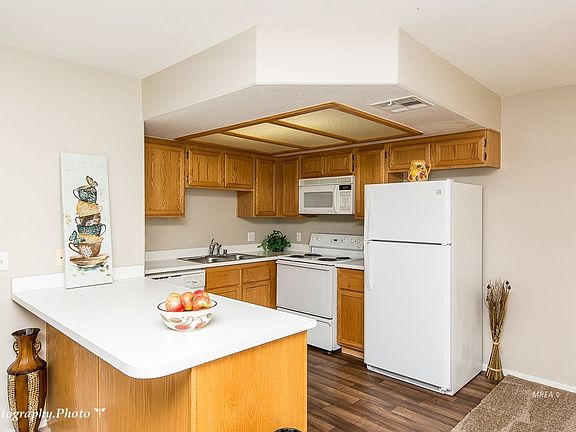 North Mesquite Lower Level Condo - Beautiful setting in the back of Rock Springs 2 - Enjoy lush green lawns and mature trees from your covered east facing gated patio. All new flooring throughout and fresh designer paint. All appliances are included, even washer and dryer. Fridge is almost new! Your own covered parking spot and plenty of guest spaces. Enjoy 2 swimming pools and hot tubs or take a walk throughout the shady community. Not far from grocery shopping, city recreation center and casinos, and right up the street from Marilyn Park - a great place to walk your dog or barbecue in a shady pavilion. This little home is ready to move into !