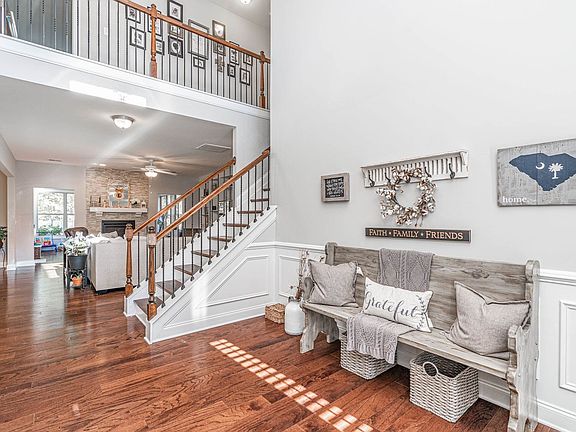 Welcome to your Next Home! This beautiful brick home built by Essex just 4 years ago is in amazing condition. Home is located in a quiet cul-de-sac, next to an empty unbuildable lot and backs up to woods, making this lot feel very private. The inside welcomes you with a vaulted entry and private dining room or office off of large foyer. Large open concept kitchen and living with plantation shutters throughout and all the extras! Kitchen boasts large island with room to sit and eat, double wall oven/microwave, gas stove/ hood vent, and eat in kitchen area. Living room is very spacious with beautiful built in shelves added by owner. Gorgeous stone accented gas fire place and its decorative molding set it apart. Past the living room you'll find a large sun room perfect for relaxing, entertaining, office space or homeschooling. Bedroom downstairs with full bath great for guests. Upstairs to four more bedrooms to include a large master with beautiful bathroom and walk in closet, three more bedrooms and a full bath as well as the laundry room. Back yard is very private, and ready for entertaining with a large patio area added by owners. Trail for the neighborhood backs up to the back of the property as well, making it easy for walks and bike rides! With Award winning schools, close to interstate and shopping it's a great place to call home! Come see it for yourself, this one won't last long!