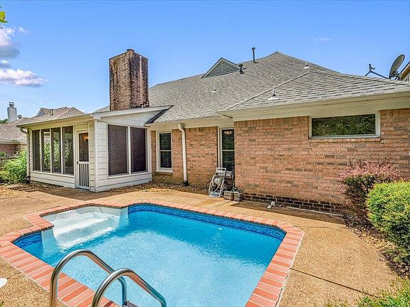 Charming 4BR/2BA home all on one level, nestled on a quiet street in a gated community with no city taxes! This inviting home offers a spacious floor plan with smooth ceilings, beautiful moldings, hardwood & porcelain tile floors, and a cozy screened-in sunroom. The large den features a gas fireplace and flows seamlessly into the open dining room—perfect for gatherings and everyday living. Step outside to your private backyard oasis, complete with a sparkling inground pool—ideal for relaxing or entertaining. The renovated luxury primary suite includes a whirlpool tub, separate shower, dual vanities, walk-in closet, and spacious bedroom. The kitchen boasts granite countertops, stainless steel appliances, a large pantry, breakfast bar, and eat-in area. Vaulted ceilings and abundant natural light throughout. Refrigerator, washer & dryer stay! Furnace was replaced in March of 2024! Pool liner is BRAND NEW!