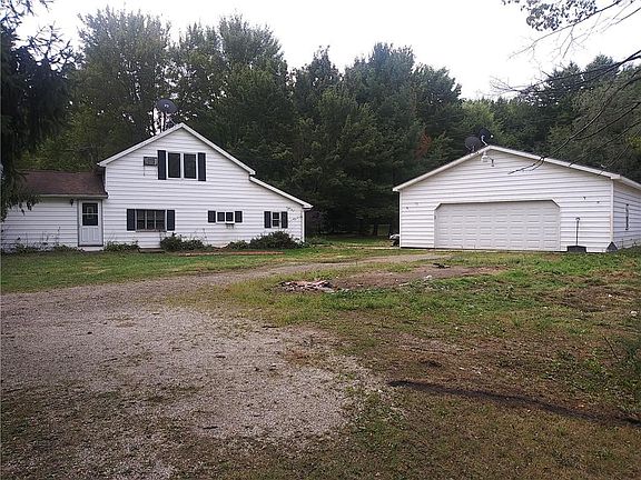 Country living, 1 acre lot. unique woodwork in kitchen and stairway. 3 sources of heating (wood burning, propane, & electric). Very oversized garage store 4-6 cars and probably 2 others. Home mostly needs cosmetic lift.