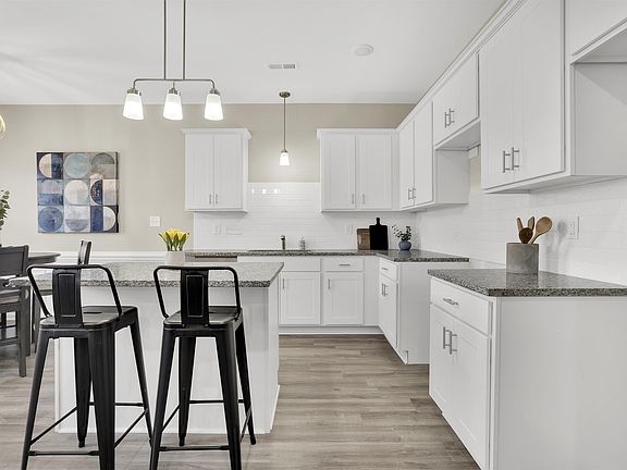 Stunning, MOVE-IN READY new construction townhome in desirable Wake County location with easy access to Raleigh and Fayetteville! This two-story unit features lower-level LVP, open-concept kitchen and living with stately granite counters, stylish subway tile backsplash, white cabinets, and generous island for entertaining. Upstairs you will find a large owner's suite w/ walk-in closet and en suite with ceramic tile & quartz counters. Two additional bedrooms, large hall bath with garden tub and second floor laundry rm. finish the tour. Attached one-car garage, dedicated parking, modern selections, close proximity to downtown Angier and Fuquay make this home a must-see. Enjoy maintenance-free living; less time worrying about upkeep and more time enjoying your new home! Great for a first-time buyer, or investors alike, with excellent rental possibilities