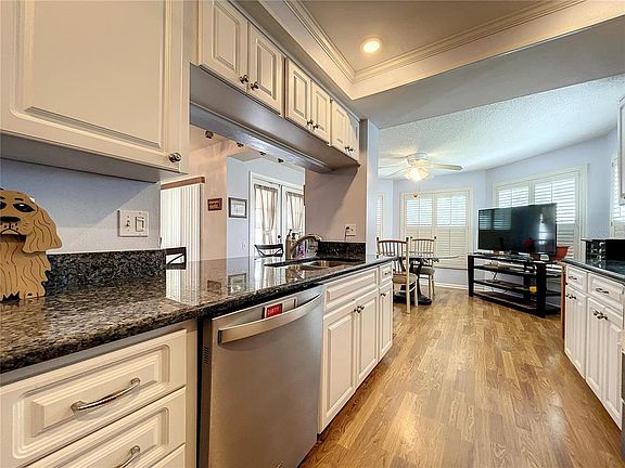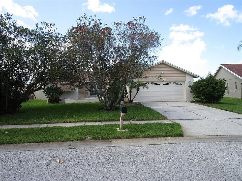 TWO BEDROOMS WITH A DEN! Great room with formal dining room/ cathedral ceilings wood burning fireplace, formal dining room great for entertaining. Sunny breakfast nook overlooking the pool, updated kitchen cabinets, with granite countertops, stainless steel appliances. All the windows in the breakfast nook were installed in 2021/ hurricane rated windows, breakfast nook also features plantation shutters. Second bedroom and hall bath are on the opposite side of the home. Primary bedroom is spacious with a sliding glass door to the pool, en suite bathroom featuring updated vanity, granite countertop with "waterfall" granite from top to bottom. His/her sinks, shower stall, large walk in closet. Step out side to the Florida lifestyle, large lanai the length of the home with a sparkling pool and screen enclosure. Yard fully fenced with top of line vinyl fencing. Large inside laundry room with a closet, utility sink and cabinets, sprinkler system, Per the seller: 2021 the entire flat roof was replaced/ AC replaced in 2019/Water heater replaced in 2022/ Water softener replaced 2019, Stove 2019, Refrigerator 2013, Dishwasher 2018, Washer & Dryer 2019. Several sliding glass doors, pocket doors, ceiling fans. Great location in Trinity, close to tons of shopping, restaurants, cafes, Trinity Hospital, Wiregrass Mall, Tampa Premium Outlets, Clearwater Beach, Buccaneer Stadium. Great school district easy commute to Tampa and airport.