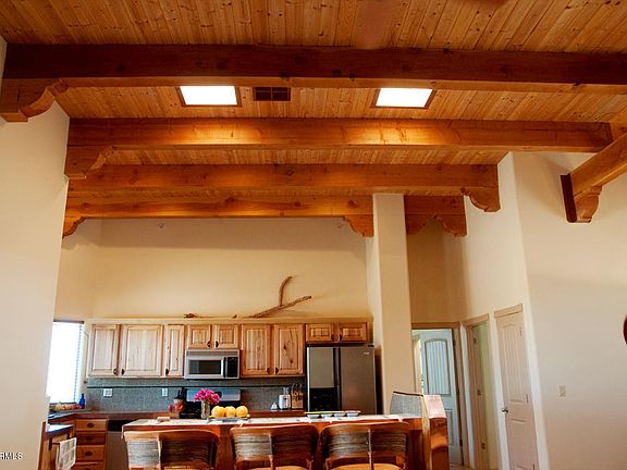 This is a custom home built in 2008. 2x6 construction with R-25 in walls and R-40 in ceiling with Low E windows. All energy efficient features. Pueblo style construction. Ammenities: 10' ceilings in bedrooms, 14 foot wood ceilings in kitchen, dining & Great rooms. Granite counter tops, wood blinds, front & back porches, over sized 2 car garage, jet tub in master, 3 walk in closets & numerous other custom features. Fenced lot.