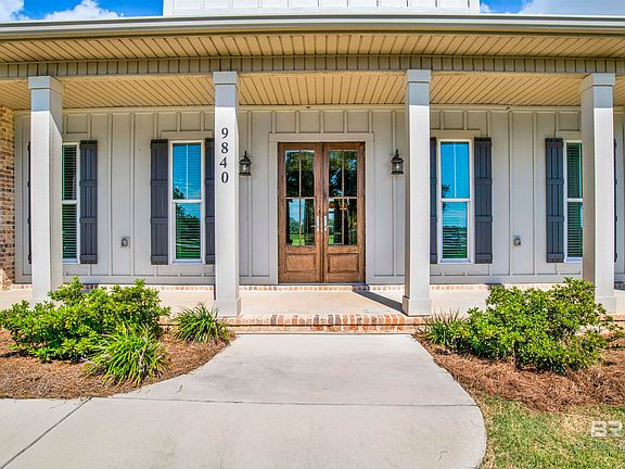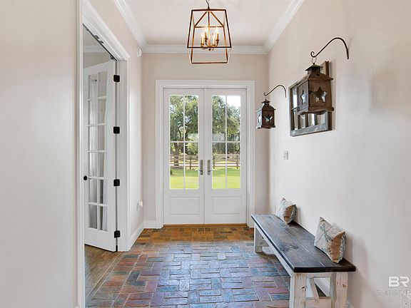 Beautiful custom built home nestled within a small, serene neighborhood that offers peaceful retreat and rural surroundings. You are welcomed with an open front porch, attractive double front exterior doors and then to the interior of the home by a stunning foyer entry that immediately sets the tone. Continue into an open living room, kitchen and a separate formal dining room. The custom kitchen is an absolute dream, with split brick floors, patterned tile backsplash, large kitchen island with butcher block countertop, and attractive appliances including a 6 burner Kucht gas stove with beautifully designed range hood. The living area has a brick lined ventless gas fireplace at center and looks out over the spacious backyard via tri-panel glass doors. A large laundry room is equipped with built in shelves and cabinetry that is enough to accommodate not just laundry use, but use as a butler style pantry. The split floor plan is ideal and functional. Primary bedroom has a lovely bathroom with large tiled shower and the guest bath is a Jack and Jill bath on the opposite side of the home between bedroom 2 and 3. There is no carpet to maintain! The screen back porch offers plenty of room and there is additional patio space beyond for enjoyment outdoors. Additional items worth noting are the tankless water heater, upgraded interior and exterior wall insulation for energy efficiency, high impact windows, and 250 gallon propane tank. There are so many features about this residence that it is impossible to mention them all so we have an additional document of bullet points. Be sure to contact your agent or the list agent for this list. A definite draw to the location of this home is that is sits on the outskirts of the historical town of Magnolia Springs, which is a magazine worthy, picturesque town, well known for its southern charm and small town events. It is home to the annual and highly anticipated July 4th parade that is small town living at its absolute best. Buye