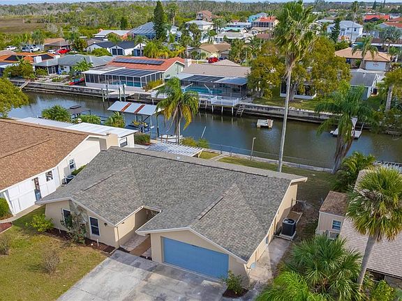 Luxury Waterfront Living with Gulf Access. Introducing 9840 San Sebastian Way, Port Richey, a beautifully renovated 2-bedroom, 2-bath canal-front home offering a desirable split-bedroom floor plan and direct access to the Gulf of America. This residence has been meticulously upgraded with a brand-new roof, fresh interior and exterior paint, and all-new flooring, featuring elegant porcelain tile throughout the main living areas and plush carpet in the bedrooms. The main living space is anchored by a striking stone fireplace, adding warmth, texture, and architectural interest. The designer kitchen is a true showpiece, highlighted by new granite waterfall-edge countertops, custom new cabinetry, and brand-new kitchen appliances to be installed, creating a seamless blend of sophistication and functionality. Both bathrooms have been fully reimagined with high-end finishes—one featuring a luxurious tub/shower combination, and the other offering a sleek walk-in shower with new tile, fixtures, sinks, and faucets, delivering a spa-inspired experience. Additional upgrades include new interior doors, new trim, and refined modern details throughout. Step outside to peaceful canal views and enjoy effortless boating, fishing, or kayaking with quick Gulf access right from your backyard. This exceptional home offers the perfect balance of luxury, comfort, and waterfront lifestyle, ideal as a primary residence, upscale vacation retreat, or investment opportunity.