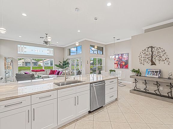 Beautiful remodeled lake front home with GORGEOUS countertops & white wood cabinetry in kitchen & owners suite Bath. Lakefront views are outstanding.This home is like no other home in its class! Fabulous PRICE CORRECTION! Stunning GE CAFE stainless appliances along with a newer washer & dryer,enlarged screened lanai with most peaceful,serene lake views ,no carpet, state of the art lighting &upgrades in this meticulous pristine home with 2 1/2 bath and 3 bedrms or 2 bedrms plus den.This homeowner currently uses third bedrm as a den/office.Walk to newly updated athletic center, 10 tennis crts, pro shop, beauty salon, indoor racquetball crts, resistance pool, lap pool, whirlpool ( indoor & outdoor)&enjoy 6 pickleball ,3 bocce courts,full Serv restaurant! Amenities galore! LOVE I