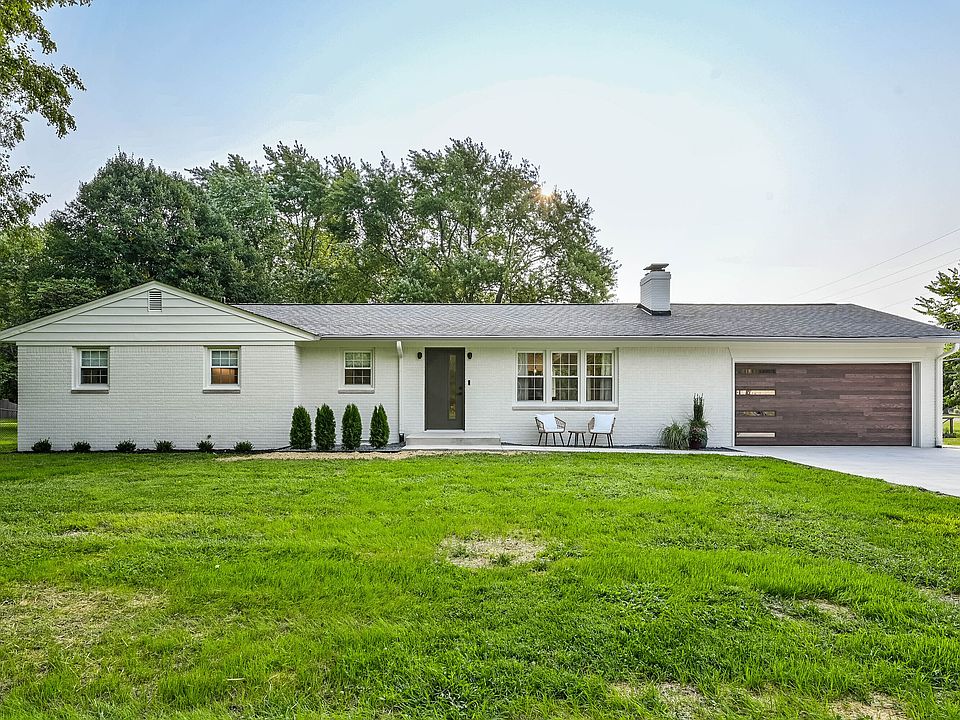 There is love and intentionality everywhere you look in this stunning 1960's ranch renovation. While the bones of this home are rooted in the 1960s, almost every inch has been reimagined and renovated to accommodate 2025 living at its finest. From the crisp white brick exterior with a warm wood-accent garage to the thoughtful landscaping, this home makes a statement before you even walk in. Inside, light-filled rooms and designer details set the tone for seamlessly usable space. This isn't your average ranch. The living room invites you in with a cozy fireplace framed by a custom green accent wall, perfect for curling up or entertaining friends. The kitchen is the showstopper - an oversized quartz island, sleek cabinetry, stainless steel appliances, and a wall of sliding glass doors leading to the backyard patio. It's equal parts functional and beautiful. The primary suite is a true retreat with a walk-in closet and a spa-like bath featuring heated floors - the perfect touch of comfort year-round. The additional 2 bedrooms are comfortable and bright, with updates that feel fresh and modern. High end LVP floors flow throughout, tying the home together with warmth, character, and durability that is ready for anything life throws your way. Located in a prime Carmel spot, you'll be close to schools, shopping, dining, and trails - yet tucked into a quiet, tree-lined street that feels private. Every detail has been carefully considered so you can move right in and call 9841 Haverstick Rd. your new home.