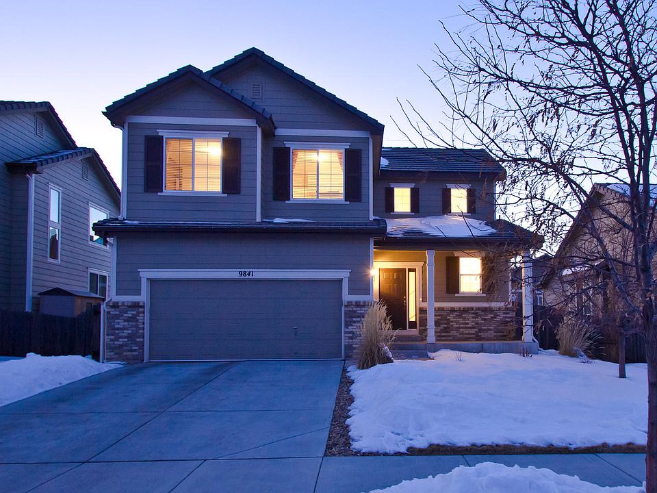 Location, location!! This 4 bedroom home in Fronterra Village will have you looking no further. Right across from one of the 3 large parks surrounding Fronterra, you can watch your kids play. You also can take a 2 minute walk right around the corner to their school. Inside, this home is immaculately maintained and shows pride of ownership. Beautiful scraped floors adorn the main level, accompanied by granite in the kitchen and a walk-in pantry. The family room boasts a lovely fireplace mantel that makes this main level feel extra inviting. Upstairs you have plenty of room with 4 bedrooms to even have an office, hobby, play or workout room if you choose. The backyard is quite spacious and features a large concrete patio, perfect for entertaining or playing in the beautiful Colorado weather. The full basement has an open layout that also gives you plenty of options create your dream space. There aren't many homes with 4 beds and the amenities at this price point. It won't last long!!!