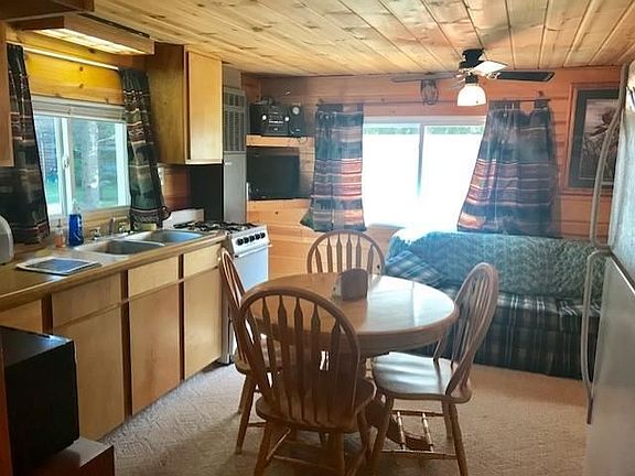 A cute and cozy cottage completely updated and located close to Higgins Lake, state land and trails galore! Knotty pine interior throughout plus new windows, exterior doors, siding, insulation and some flooring. 1 bedroom plus loft offers sleeping space for many. 10x12 shed with electric, front porch, back patio and stone fireplace in the huge back yard. A great recreational area!