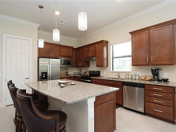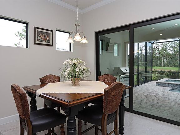 This fabulous home features 3 bedrooms, 2 full Bathrooms, 2 car garage and open floor plan. Relax in your heated pool/spa overlooking a lake and preserve and enjoy cooking out with built-in grill. Open kitchen offers ample cabinetry, large island, stainless steel appliances, natural gas stove and breakfast nook/dining area which all opens to living area with sectional sofa and large screen TV. Master suite includes a king bed, TV, walk-in shower, his & her vanity and walk in closet. Guest bedrooms include queen beds and TV's in each room which share the guest bathroom. Home also has laundry room, WIFI, and TV streaming. Greyhawk tenants enjoy luxurious amenities including: clubhouse, restaurant, resort pool/spa, fire pit, fitness center, bocce, pickle ball, tennis & more! Conveniently located in North Naples, enjoy upscale shopping and dining at nearby Founders Square. Unwind at the renowned beaches only minutes away. This is the place to live like you're on vacation.