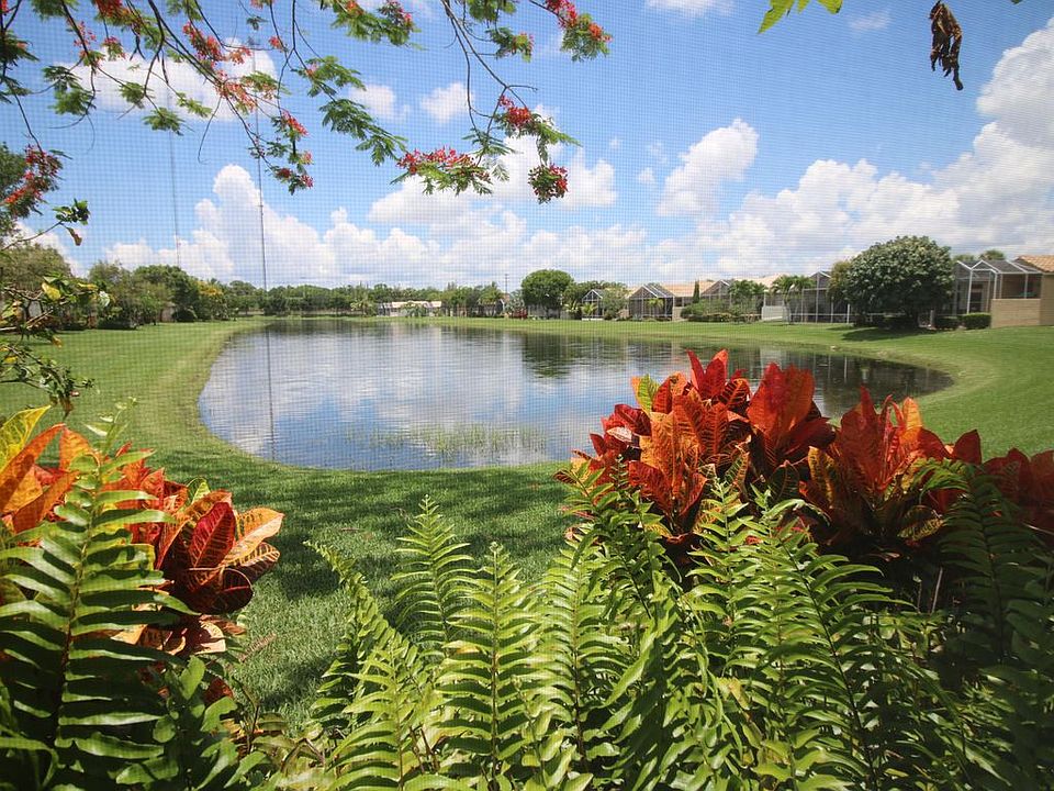 Superb lot with long lake views next to private park setting. Double glass door entry. Full accordion shutters. Beautiful bleached wood floors at diagonal in all living areas. Interior recently painted in an attractive teal tone. Numerous architectural features including wrought iron and etched glass room partitions. Dining Room features custom wall mirror. Master Bath has upgraded fixtures. Oversize screen patio to enjoy lake views. Ideal for person seeking one of a kind home with eclectic artistic flair. Situated adjacent to small park adding both charm and privacy. Come see!