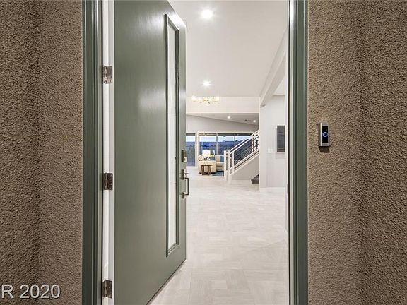 Tastefully upgraded 2 story home in Southwest Las Vegas! This home is so beautiful with welcoming entry into cozy living room, flowing into the large bright great room, with sliding doors leading out to landscaped backyard. Kitchen is chefs dream with oversized island, custom blue drawers and white cabinets, huge sink, stainless steel appliances, double oven, gas cooktop, and so much more. Dining area looks over backyard and has beautiful recessed lighting. Bedroom and bath downstairs as well! Upstairs you'll find large loft and large secondary bedrooms. Master bedroom boasts views of mountains, and master bathroom is beautiful with double sink, blue cabinets, huge luxury shower! Enjoy extended patio cover with ceiling fan, built in bbq, and views of mountains! Must see! Furniture is included.