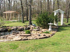 Beautifully landscaped country home with gorgeous rock work and small ponds and fountains! 3BR/2BA manufactured home with almost 1600 sq. ft. with several wooden decks and porches to take in and enjoy your surroundings. Home also has a detached garage with a concrete floor and a covered shed.