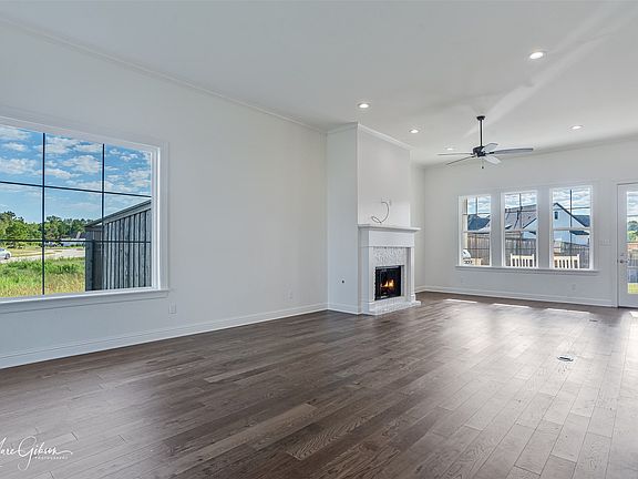 Built in 2022, this like-new home offers modern comfort with timeless Louisiana charm. Located near the neighborhood park in the gated Grove at Garrett Farm community, it features a classic brick-and-siding exterior with a precious front porch that sets a welcoming tone. Inside, the wonderful layout shines. The living room boasts wood floors, a brick fireplace, tall to-the-floor windows, and abundant natural light. The chef’s kitchen is a true highlight with a custom vent hood, GE stainless appliances, gas cooktop, pretty white tile backsplash, and an oversized island with storage, seating, and electrical outlets. The island overlooks the fireplace in the great room, while a flex room off the kitchen makes the perfect den or casual dining space. A front bedroom with access to a full bath offers flexibility for a guest suite or home office. The private master suite is thoughtfully tucked away, featuring a soaking tub, a spacious walk-in shower with bench and oversized subway tile, a double-sink vanity, and a generous walk-in closet. Two additional bedrooms share their own hallway with a convenient full bath between. Everyday living is made easy with a mud bench with storage and hooks off the garage and a utility room with decorative tile and sink. Outdoor enjoyment awaits on the covered back porch overlooking the perfectly sized yard. This home combines style, function, and comfort. Located in The Grove at Garrett Farm, residents enjoy a wonderful lifestyle on 78 peaceful acres along Wallace Lake Road in South Shreveport. This gated community is designed for healthy, connected living, offering walking trails, green spaces, scenic lake views, and more. Don’t miss your chance to own this timeless home in one of Shreveport’s premier communities.