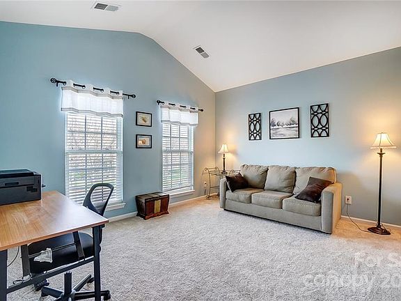 ***MULTIPLE OFFERS - BEST OFFER BY 12 PM MONDAY 2/6*** 1 Story 3 bedroom + an office home with a large 2 car garage on a cul de sac street backing to trees minutes from shopping, dining & 85. Some of the favorite features are the fenced yard, long driveway with extra parking, in ground irrigation system (separate meter), vaulted ceilings, molding, stone fireplace, open floor plan, security system with cameras, tankless water heater & paver patio. The kitchen is perfect for a chef with tons of cabinet and counter space, an extra large kitchen island, updated white cabinets with glass doors, pantry, double ovens, granite counters, tile backsplash, gas cooktop, recessed & pendant lights & more. The spacious primary suite is a perfect retreat with an extra large walk-in closet and en suite bath with garden tub and separate shower with tile surround and recently installed frameless shower door, and separate toilet room. Carpet updated in 2022. Seller providing a 1 year home warranty.