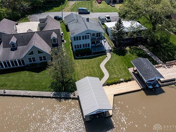 Welcome home to this stunning 5 bed/2.5 bath waterfront property on Indian Lake featuring spectacular open water views and phenomenal sunsets. This is just what you need for entertaining family and friends or enjoying a laid back lake life. Located second from the end on a quiet cul-de-sac there is very little traffic or noise. The warm and inviting kitchen and dining room are perfect for preparing and enjoying meals after a long day on the water. You will find a whole house water filtration system and water softener in the laundry room. Also on the main floor: 2 bedrooms and 1.5 baths off the expansive living area and bonus room, ideal for a reading nook or bar area. When the nights get chilly, start a fire in the wood burning fireplace and relax while watching the moon reflect off the lake through the wall of windows. Upstairs are 3 more bedrooms, a full bath with a dual sink vanity, an additional expansive living area and bonus room. If it's a primary suite you are after, there is plenty of potential to add the suite of your dreams to the second floor. Venturing outside, you will find composite decking on both the upper and lower level accessible from the main level bonus room and 2nd story family room. The cement walkway out back will take you to your own deeded dock with electric lift and new decking which was added March of this year. The 1.5 car garage offers the finishing touch with overhead storage and plenty of tinkering space with work benches and cabinets galore.