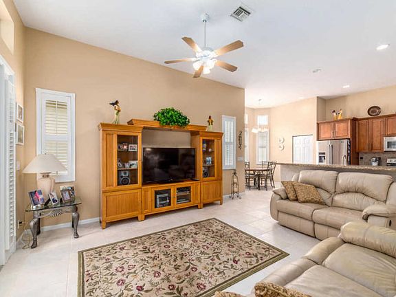 Gorgeous home in resort style, active adult community of Bellaggio! Step inside and be greeted by spacious living areas with soaring volume ceilings, gorgeous tile flooring and Plantations shutters throughout! The brand new kitchen boasts woods cabinetry, granite counter tops and new stainless steel appliances. All of the bedrooms are spacious as well. This home offers many upgrades including a brand new washer and dryer, a 3 year old a/c unit and accordion shutters throughout! Bellaggio's HOA monthly payment includes security, the amenities at Club Bellaggio, internet, cable, lawn service and telephone service! All of this located in Bellaggio which is luxurious, resort style subdivision nestled among lakes and preserves in West Lake Worth, Florida. The drive into the Bellaggio
