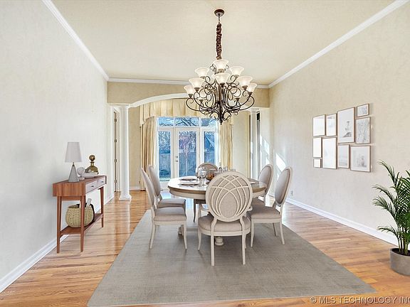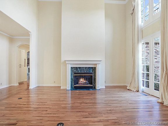 Spacious Home with beautiful architectural details in gated community, Jenks School District. Versatile floorplan, Downstairs there are 2 living areas,2 dining areas, an office, laundry room, large primary suite with 2 walk in closets, & 2 half baths. Upstairs there is a game room, 3 bedrooms, 2 full baths, plus a bonus room that can be used as an additional bedroom or second office. Large, Beautifully landscaped yard (1/3 acre) with a private covered patio and pond, Lovely views from every window, Nice hardwoods, Floor to ceiling windows, Extensive Crown Moldings, Stacked Stone Fireplace off the Open Kitchen Floor Plan with Island & Newer Appliances, Built-In Counter Depth Extra Wide KitchenAid Refrigerator, Beamed Ceiling, Oversized Rms, Good Storage, Two Fireplaces, Fresh Exterior Paint in 2022, New Roof in 2020, Custom Draperies, 3 Car Garage, Sprinkler System, Zoned HVAC, Close to some of the areas finest Public and Private Schools, Beautiful Gated Neighborhood with Easy Access to the Creek Turnpike Bike and Walking Trails as well as RiverParks, Surrounded by beautifully appointed homes and landscapes and ponds.